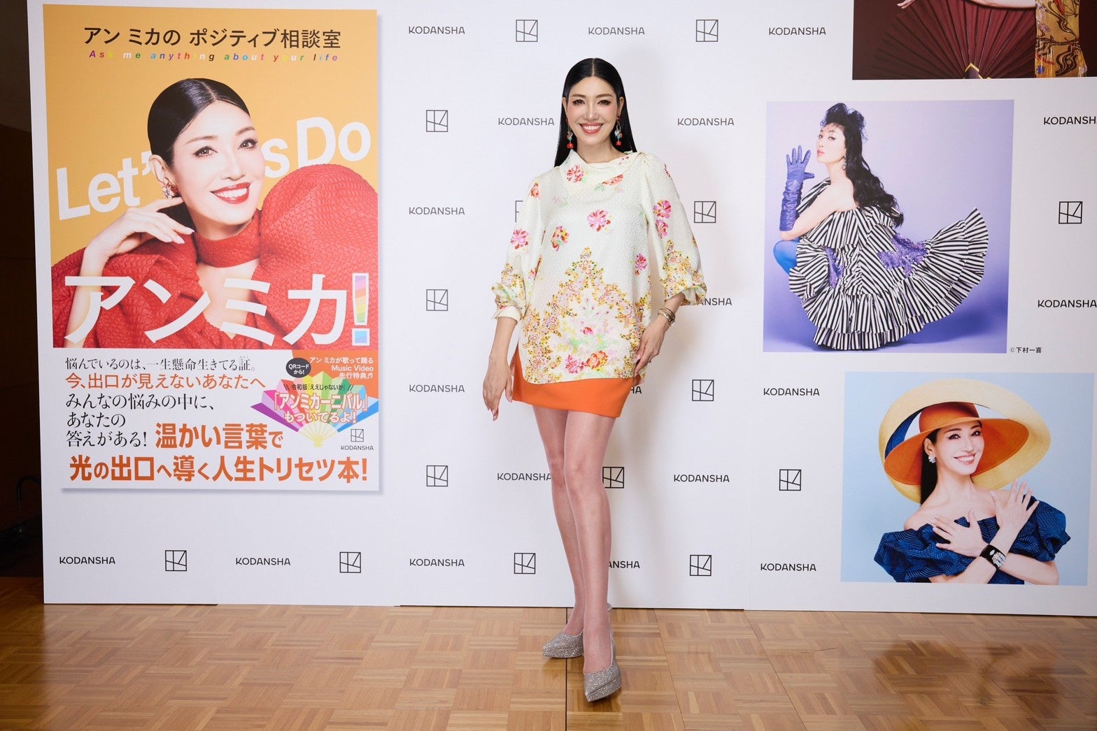 7月2日の発売に先駆けて行われた記者会見には、鮮やかなオレンジのミニスカートから伸びた美脚で登場したアン ミカから、取材陣も思わず聞き入ってしまうようなポジティブ名言の数々が飛び出した。