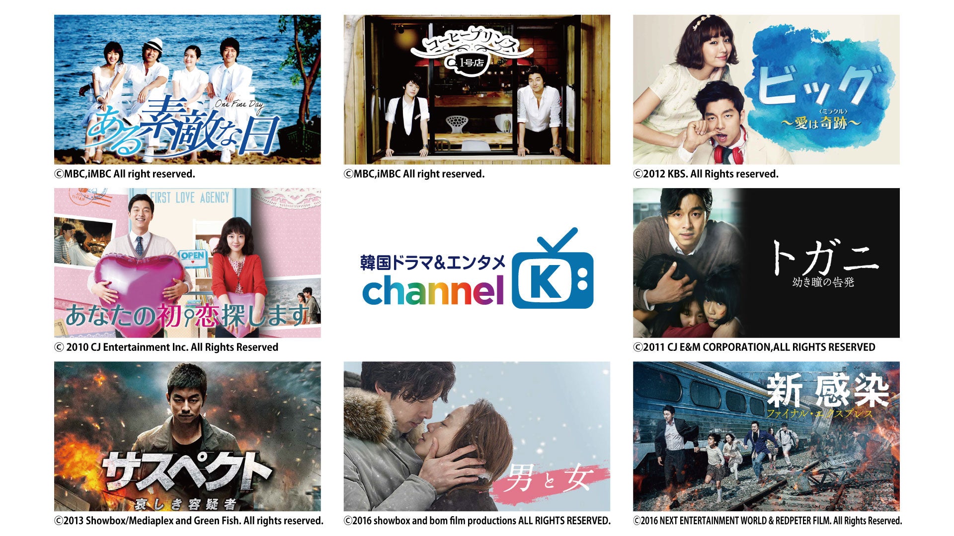 さらに、7月は大人気トップ俳優コン・ユの誕生日ということで「チャンネルK」ではコン・ユ出演作を一挙配信!韓国発のゾンビ映画として話題を集めたサバイバルパニックアクション『新感染 ファイナル・エクスプレス』や、 “創作ロマンチックコメディの金字塔”と言われる韓国の人気ミュージカルを映画化した『あなたの初恋探します』、韓国で実際に起こった事件を題材にしたことで事件が再検証され、通称「トガニ法」が制定されるなど韓国社会に波紋を呼んだサスペンス映画『トガニ 幼き瞳の告発』ほか、俳優コン・ユがこれまで演じてきたヒット作の数々を「チャンネルK」ならお得にお楽しみいただけます。