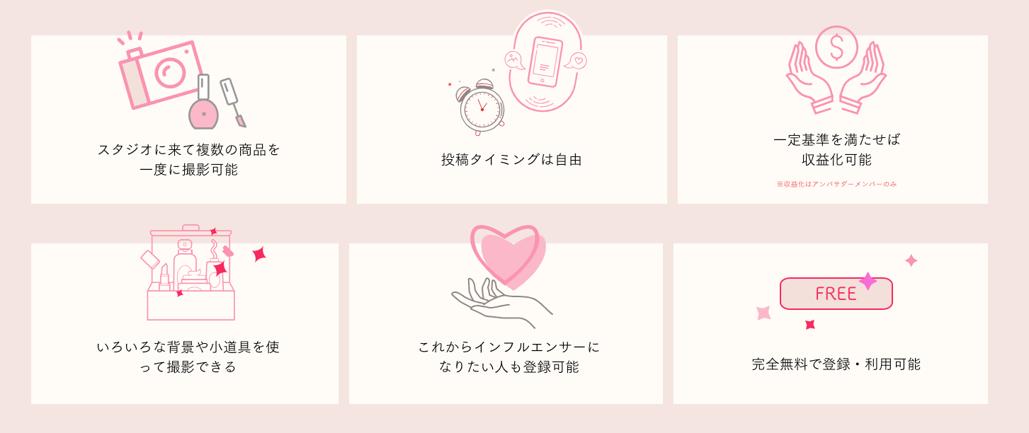- インフルエンサーは、無料で韓国ブランドやコスメを体験でき、スタジオで撮影することが可能です。