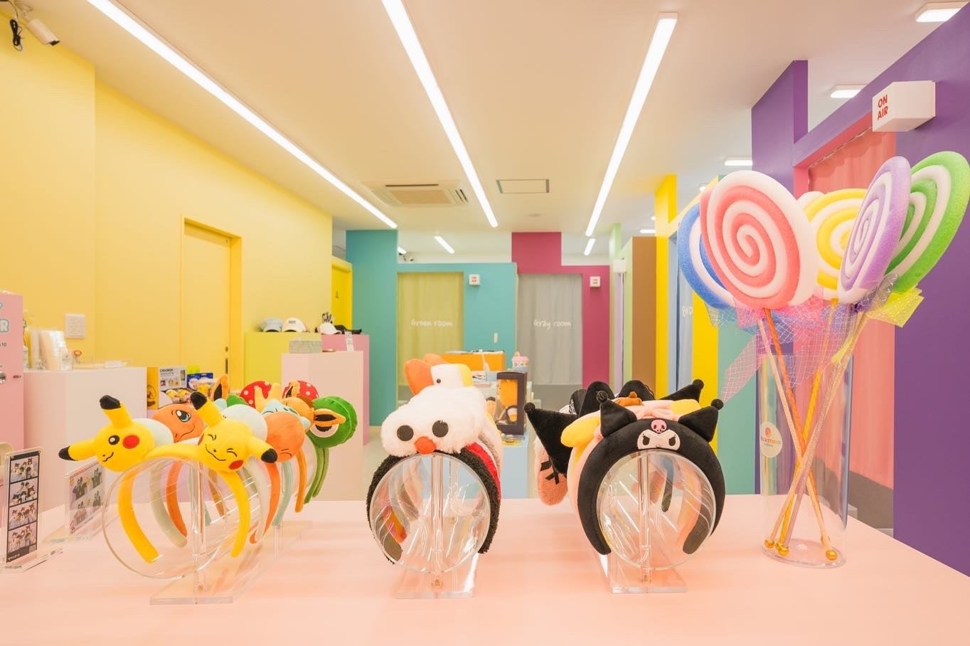 また、カチューシャやぬいぐるみハットなどの「かぶりもの」、ティアラやサングラスなどのアクセサリー合計100種類以上)はすべて無料で貸し出しており、このラインナップは定期的に入れ替えを行っています。さらにプリントのデザインに相当する「フレーム」は16種類を用意 。こちらもラインナップは随時変更していくほか、将来的には各種のブランドやキャラクターとのコラボ レーションも視野に入れています。なお、撮影した画像および
