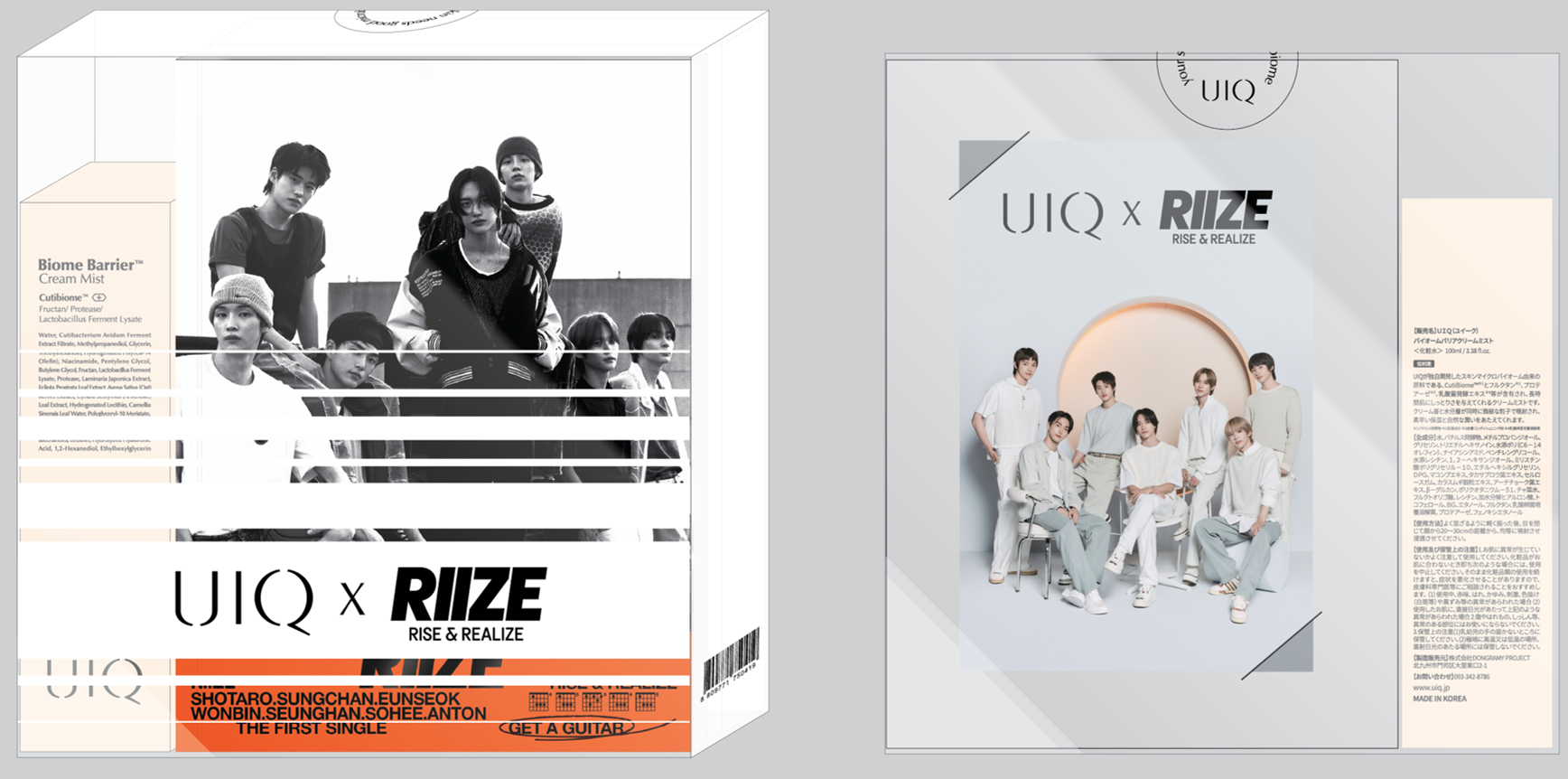 UIQは次世代成分であるマイクロバイオームを核心原料とする代表的な化粧品ブランドで、新しい市場を開拓する大胆な挑戦精神を持っています。UIQが追求するブランドイメージが、RIIZEのアイドルの次世代を築こうとするエネルギーとマッチすると判断し、ブランドアンバサダーに選定しました。