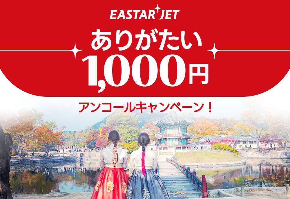 韓国のLCC航空会社イースター航空が9月4日午後2時から韓国仁川(インチョン)行きの東京&大阪&福岡発区間を対象とし自社ホームページで「ありがたい1000円アンコールキャンペーン!」を実施いたします!