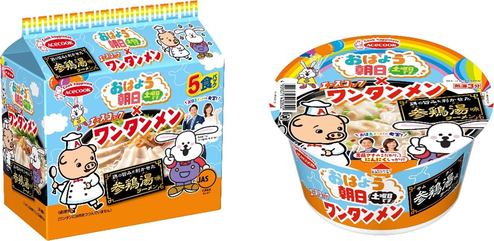 エースコック株式会社(本社:大阪府吹田市 社長:村岡寛)は、2023年11月20日より、「(袋)おはよう朝日 土曜日です×ワンタンメン 参鶏湯味ラーメン 5食パック」「おはよう朝日 土曜日です×ワンタンメンどんぶり 参鶏湯味ラーメン」を新発売します。