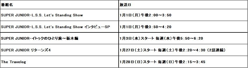 株式会社ストリームメディアコーポレーションは自社テレビ局「KNTV/KNTV801」において、1月はSUPER JUNIOR特集としてメンバーのサウジアラビア旅行に密着したリアルバラエティ『SUPER JUNIORのランプの騎士』をお届けします。また、韓国で高視聴率を獲得した話題のドラマ『恋人』 (原題)のスペシャル番組とダイジェスト、アイドルや格闘家などが出演したバラエティ番組を日本初放送することを決定いたしました。