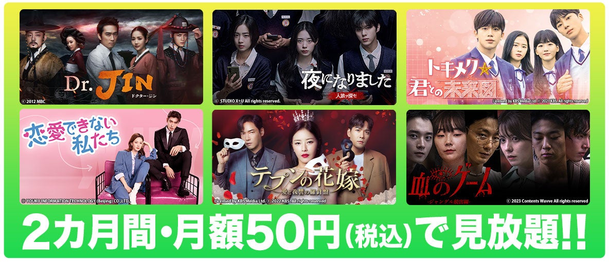 「冬のソナタ」、「フルハウス」、「IRIS-アイリス」といった一度は聞いたことがある不朽の名作から、「Dr.JIN」や「月桂樹洋服店の紳士たち」、「テプンの花嫁~愛と復讐の羅針盤~」をはじめとする見放題独占配信作品、人気俳優出演の中国ドラマまで韓国・中国エンタメ好きにご満足いただけるサービスとなっており、どなたでも初回14日間無料でお試しいただけますので、ぜひ一度ご体験ください。