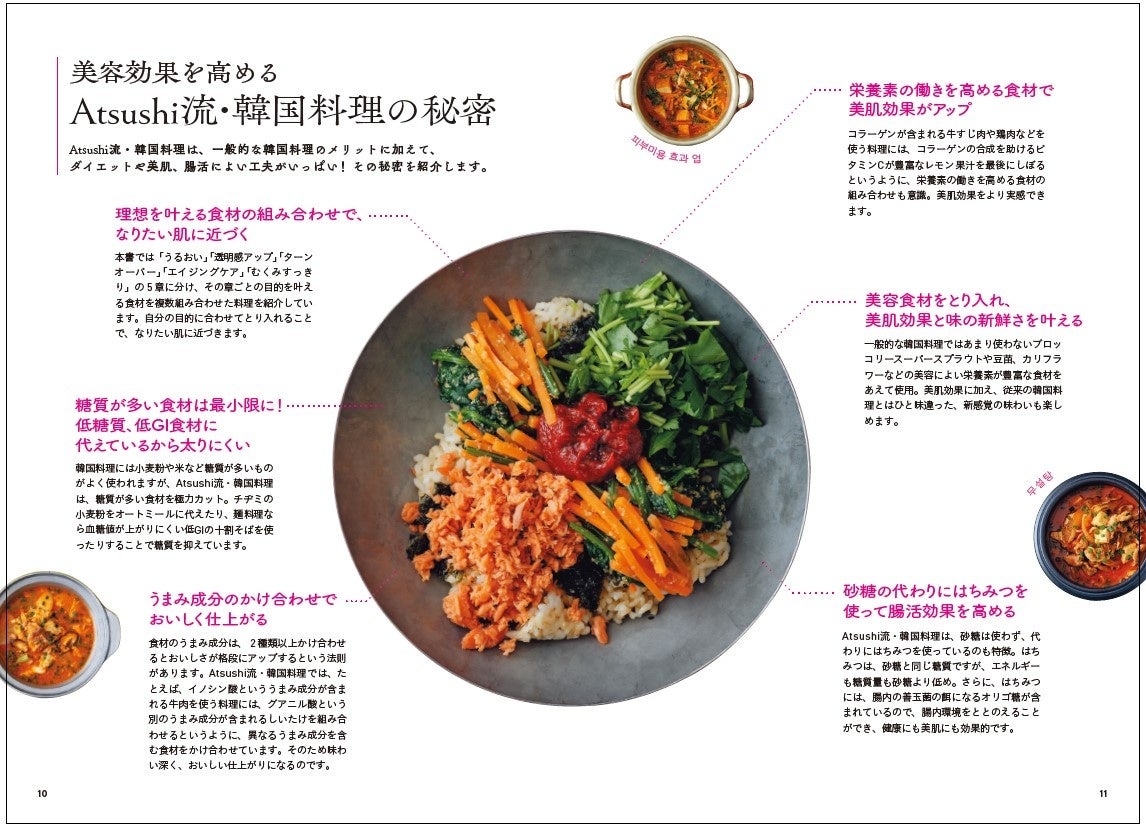 美容大国・韓国のだだでさえキレイになれる料理の数々にAtsushiさんオリジナルの美容ティップスをふんだんに盛り込み、ダイエットすることなくキレイになれる最強の美容レシピを初公開します!