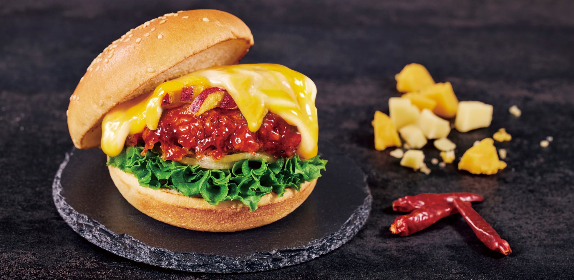 韓国グルメの定番であり人気の【チーズタッカルビ】をハンバーガーにしました。