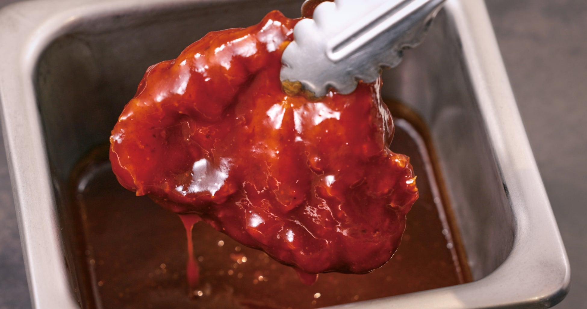店内で1枚1枚丁寧に揚げたフライドチキンに甘辛ソースをたっぷりと絡めました。