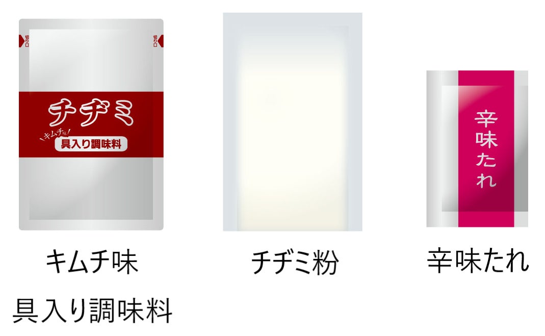 (キムチ味具入り調味料185g、チヂミ粉100g、辛味たれ30g)