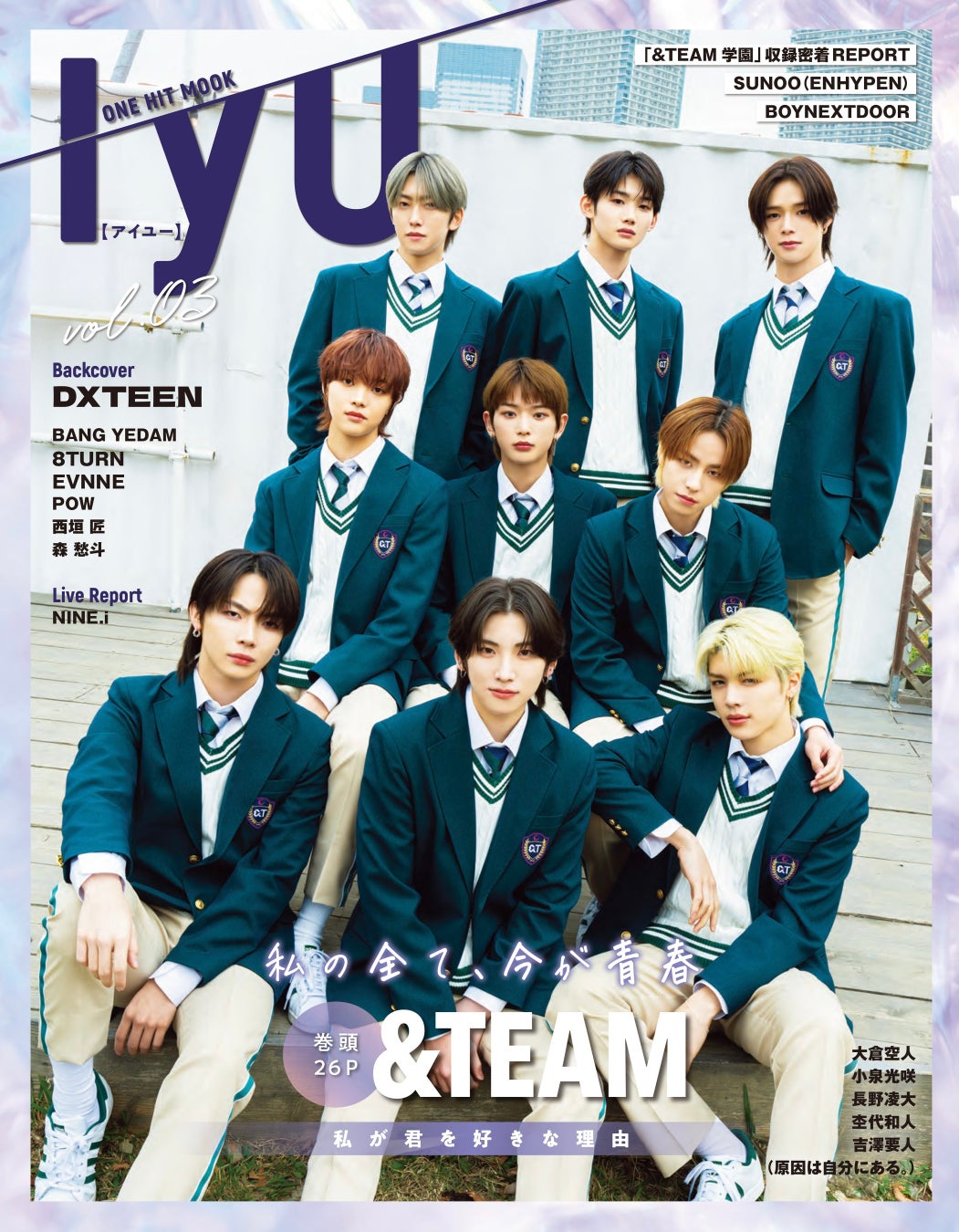 「IYU(アイユー)=私が君を好きな理由」をテーマに送るグラビアムック本の第3弾です。俳優・アイドル・K-POPアーティストの撮りおろしインタビューが満載で、今回も韓国現地での取材を実施。表紙には&TEAM、裏表紙にはDXTEENが登場します。