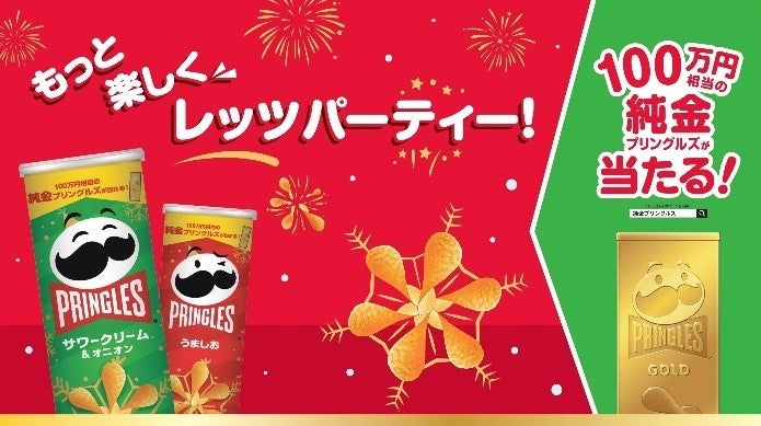 プリングルズでは、100万円相当の純金プリングルズなど、豪華プレゼントが当たるキャンペーンを実施中です。重厚感のある黄金に輝く純金プリングルズが当たる「100万円相当の純金プリングルズが当たる!キャンペーン」では、キャンペーンURLから必要事項を入力するだけでどなたでもご応募いただけます。「プリングルズを食べて豪華プレゼントが当たる!キャンペーン」では、プリングルズ*を購入し、ポイントを貯めて応募すると、抽選で120名様に、カード型旅行券JTBトラベルギフト5万円分、もしくはグルメカタログギフト3千円相当が当たります。応募期間は2024年3月31日(日)まで。ワクワク感を感じられる冬の豪華キャンペーンにぜひご参加ください。