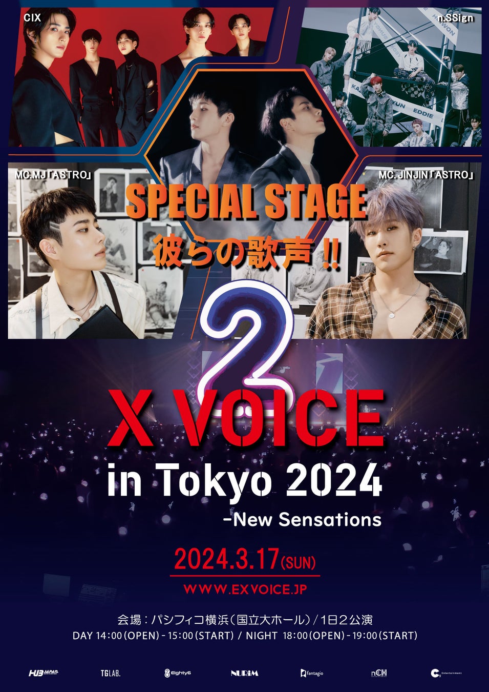 X VOICE Ⅱ in Tokyo 2024 ~ New Sensationsのステージには、大型ルーキーとしてK-POP界を賑わせた多国籍グローバルボーイズグループ、n.SSignと、5×無限大の色彩を武器に海を渡り名前を轟かせる、CIX、更に、去年と同様、メインMCとして、また『X』としてトークやパフォーマンスに花を咲かせ、色鮮やかなステージを作るJINJIN(ASTRO)とMJ(ASTRO)による2度とない奇跡のコラボレーションと圧倒的なステージはX VOICE Ⅱでしか味わえないものとなっている。