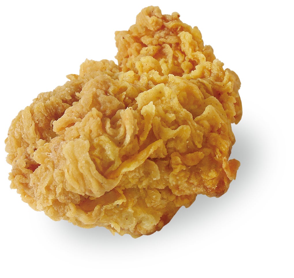 フライドチキンのクセになるサクサクした食感。その秘密は、秘伝のクリスピーパウダー。厳選したやわらかジューシーな鶏肉にたっぷりまぶして二度揚げしています。
