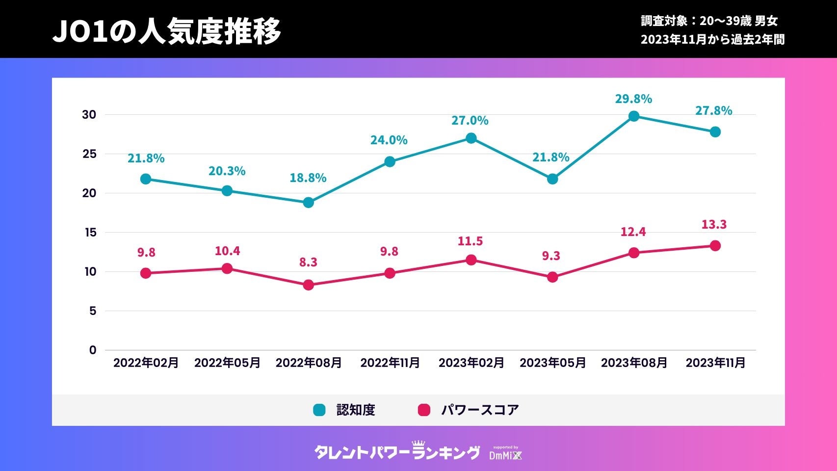 今回、そんなボーイズグループ「JO1」に焦点を当て、タレントパワーランキングで検証しました。