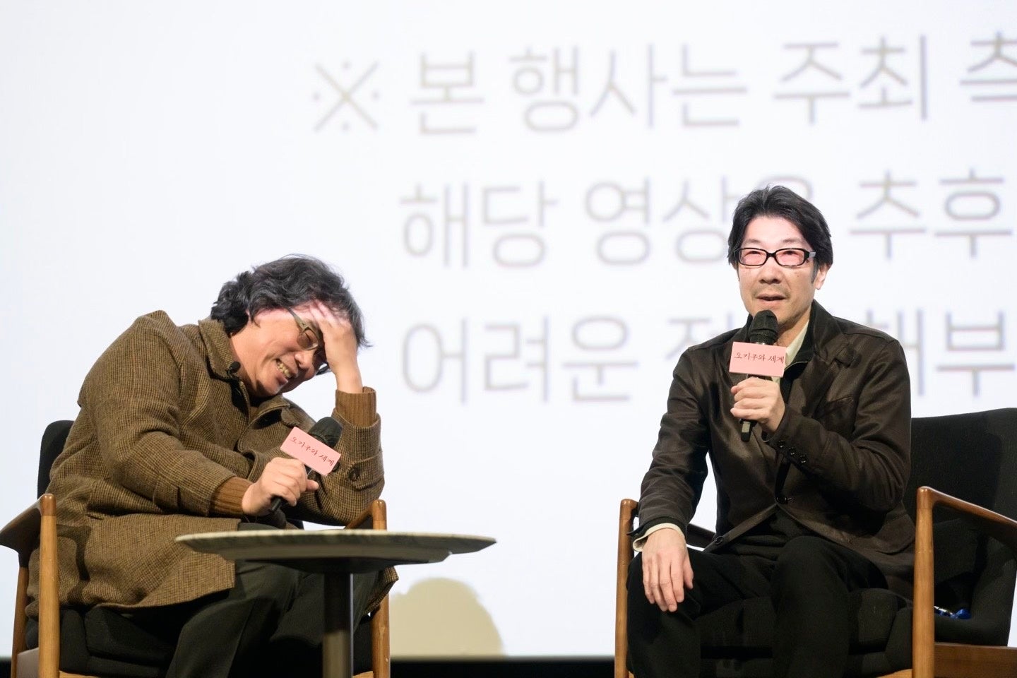 同日午後にシネコンのCGV龍山で行われた上映イベントでは、ポン・ジュノ監督が「ポンテール」(ポン・ジュノ+ディテール)という愛称に相応しく、阪本順治監督の繊細な演出が映画の随所に隠されていることを紐解きました。たとえば、「突如挿入されるカラーシーンが映画のリズムを生み出す演出意図は何か?」、「3年に及ぶ長い時間をかけて新しい章を作り出す際にどのようなリズムで続けるかをどう考えたのか?」、「映画全体の微妙なリズムを形成する美しいインサートショットをどこにどのように配置し、どのようなリズムで調整したか?」など、制作の秘密について質問を投げかけました。