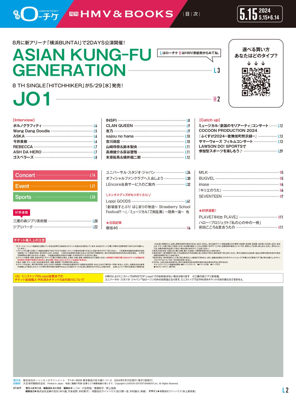 株式会社ローソンエンタテインメントが運営する「ローソンチケット」および「HMV&BOOKS」は、フリーペーパー『月刊ローチケ/月刊HMV&BOOKS』2024.05.15号を、5月15日(水)より、全国のローソンやHMVなどの店頭にて順次配布いたします。