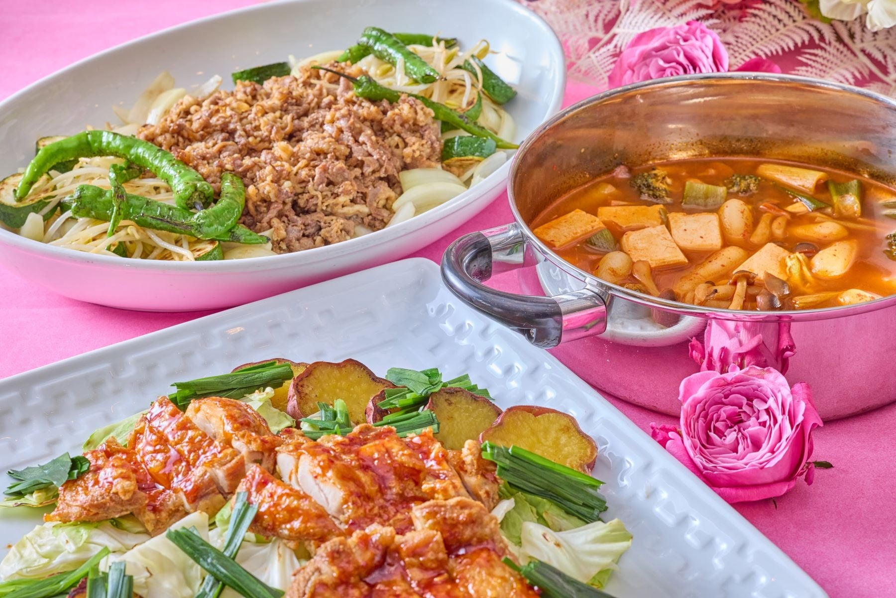 イタリア ラスパドゥーラチーズのチーズダッカルビ/夏野菜たっぷりの定番プルコギ/チーズトッポギのスンドゥブチゲ/韓国チヂミ コチュジャンソース/5種の彩り野菜で作るオリジナルビビンバ