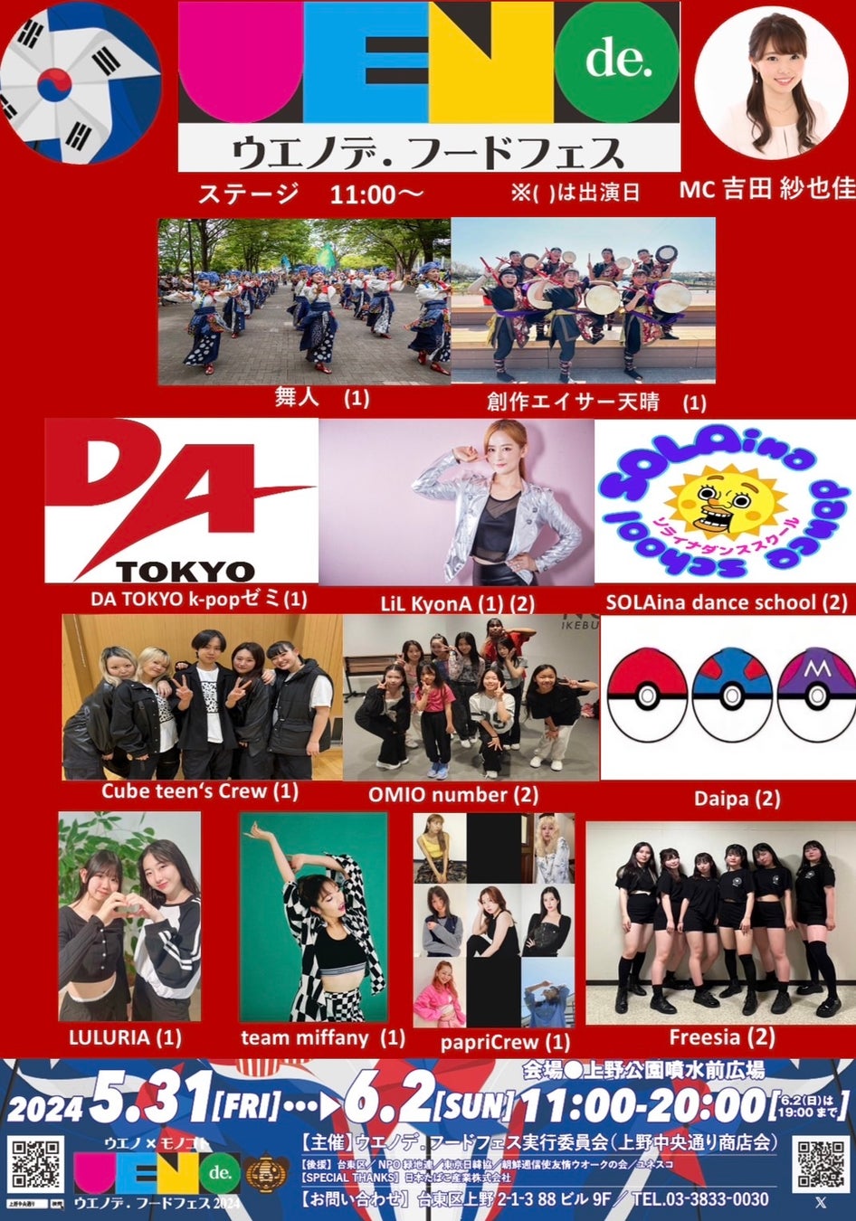 上野公園 噴水広場前に日韓エンタメステージを特設し、日本と韓国から様々なアーティストやアイドルがパフォーマンスを行います!