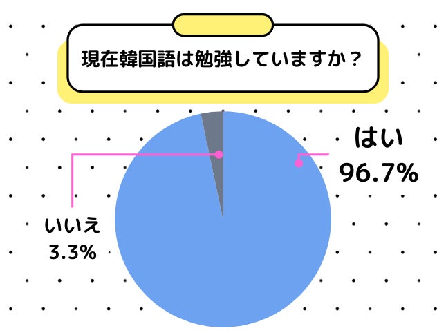 韓国のエンターテイメントに興味を持ってから韓国語を学習する人が一定数存在していることがわかりました。さらに、その興味を持った人々の96.7%が、現在韓国語を勉強していることが分かりました。