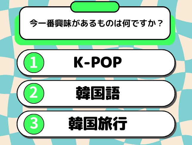 質問①に続き、現在の興味、関心があるものへの回答ではK-POPの人気が依然として高いことが明らかになりました。