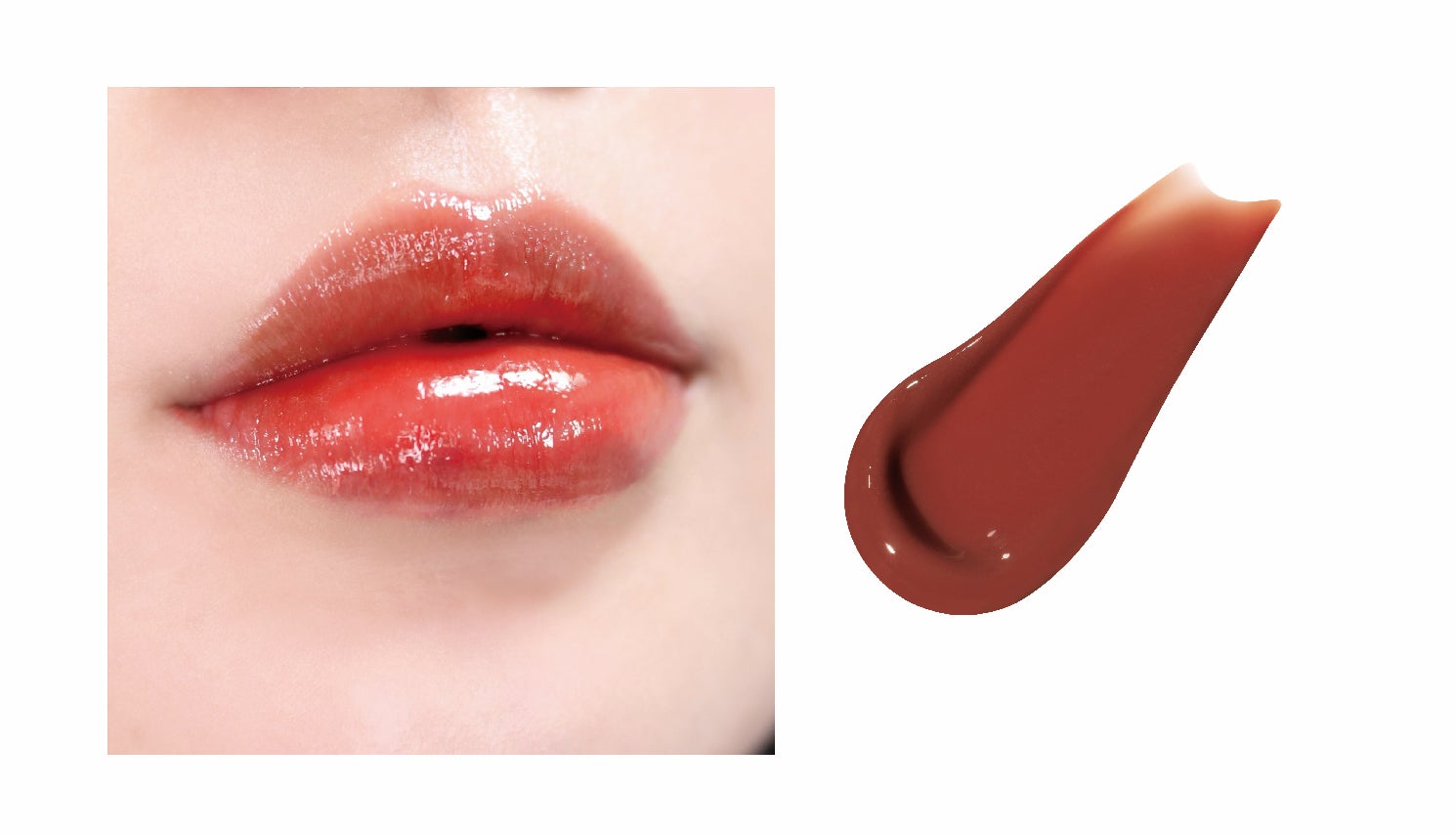 するすると塗れるみずみずしいテクスチャー。シャインエッセンスオイル※1、フルーツエキス※2配合で、つけている間もうるおい感がつづく魅力的な唇に。