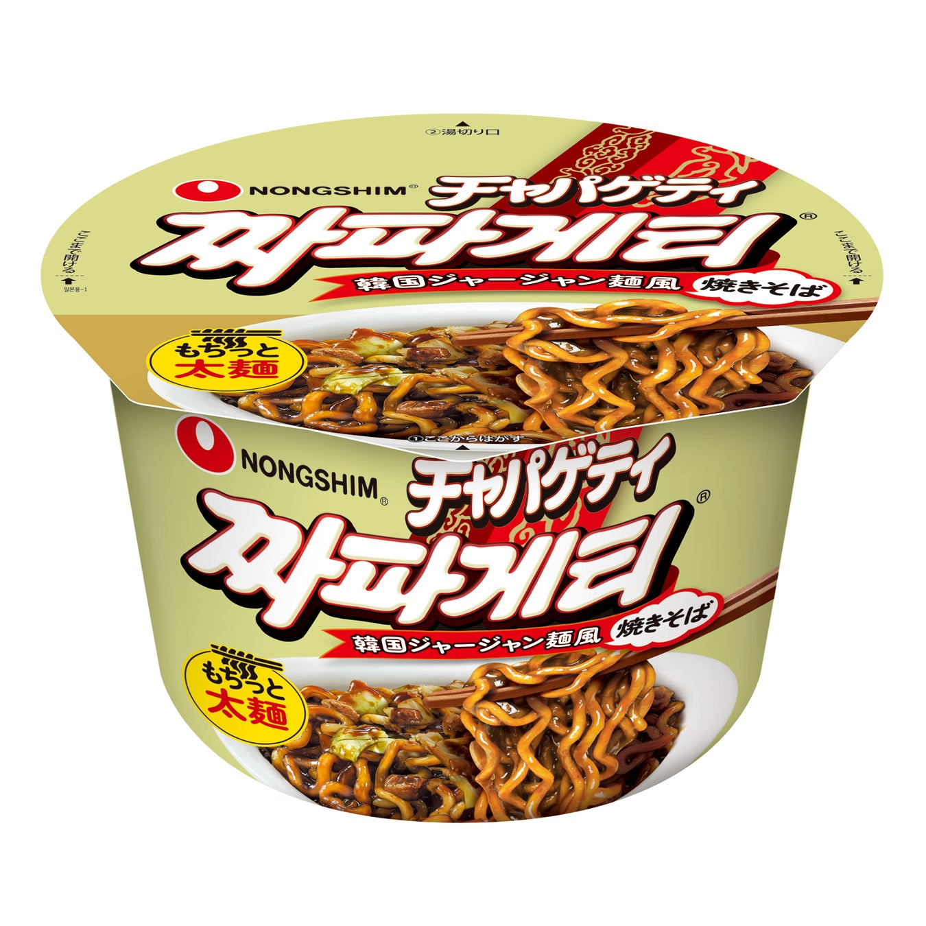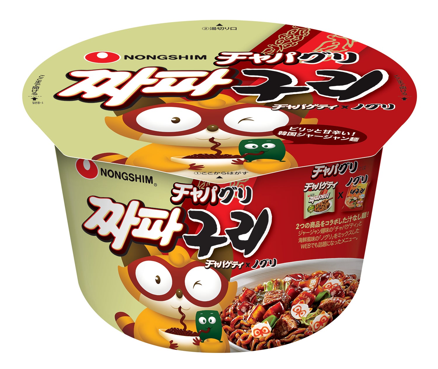 韓国風ジャージャン麺「チャパゲティ」と海鮮風味の「ノグリ」をMIXした甘辛な汁なし麺。