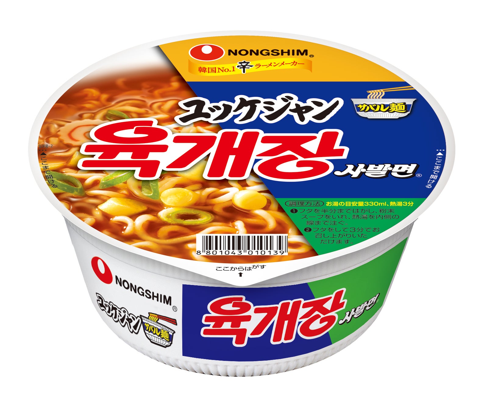 1982年に農心初の容器タイプラーメンとして韓国で発売し、以降約40年間にわたり、人気のロングセラー商品。唐辛子の辛さが効いた韓国伝統のユッケジャンを再現した味で、麺とスープの相性も抜群。麺はなめらかな口当たりとしなやかなコシを併せ持った細麺です。