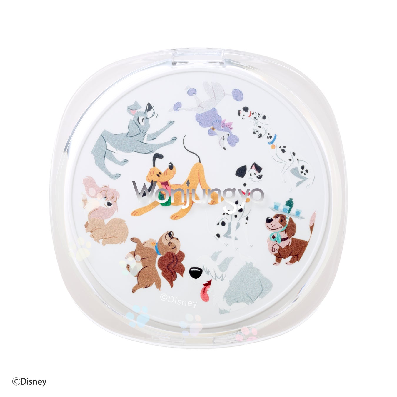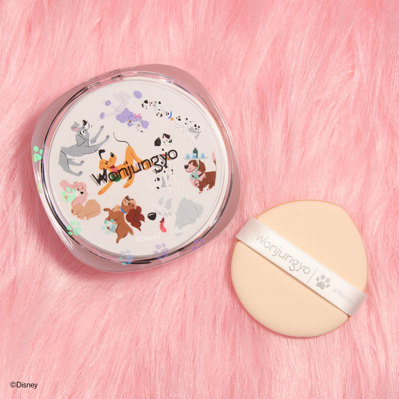 ケースには、ディズニーの様々な犬キャラクターたちを愛らしくプリント。さりげなくきらめく肉球の形のホログラムが、可愛さをさらにアップ。付属のパフも限定仕様の肉球マーク入り。