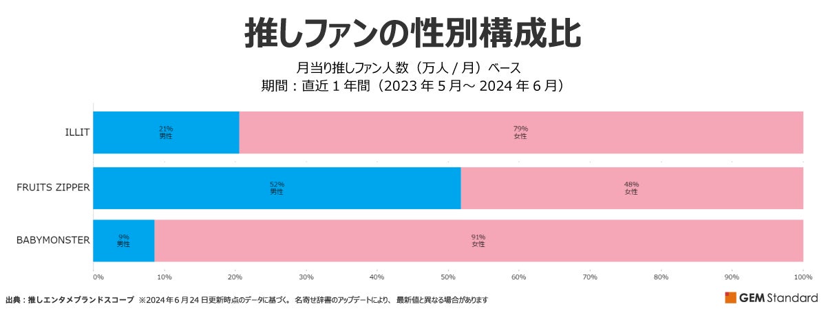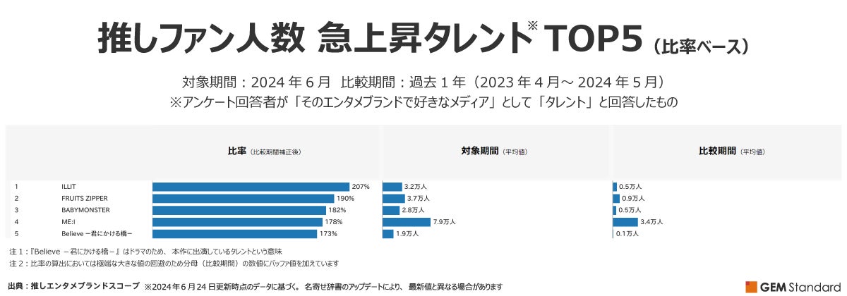 『ILLIT』『FRUITS ZIPPER』『BABYMONSTER』がタレントとして好きなエンタメブランドにおいて<比率ベース>で急伸