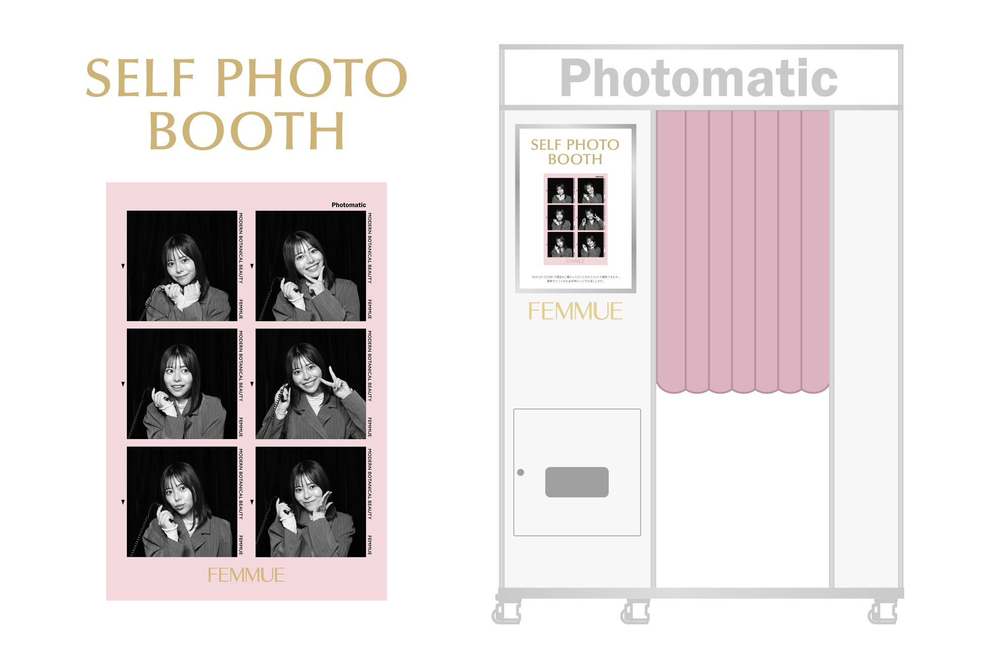 ご購入いただいた方には、フォトブースでの撮影もお楽しみいただけます。FEMMUEのロゴが入ったオリジナルのプリントは今回のPOPUP限定デザインです。