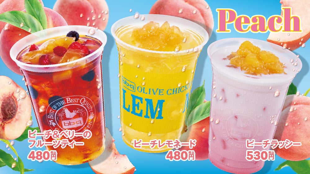 ワタミ株式会社が国内で運営する、韓国No.1 フライドチキンブランド『bb.q オリーブチキンカフェ(以下、オリーブチキンカフェ)』は、7月11日(木)より「ピーチラッシー」(530円税込)「ピーチレモネード」(480円税込)「ピーチ&ベリーのフルーツティー」(480円税込)および「オリーブチキンと彩り野菜のグリーンカレー」(690円税込)を期間限定で販売いたします。