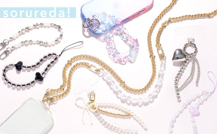 韓国トレンドを意識した"可愛い"が詰まったアイテムを展開する「sorureda! 」シリーズから、ファッションアクセサリーとしても使えるアクリルチェーンハンドストラップ・ハンドストラップ・ショルダーストラップ・ビーズストラップ・チャームストラップを展開します。