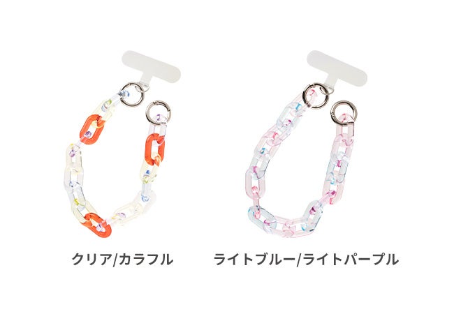 アクリルチェーンハンドストラップは、カラフルでPOPなカラーを組み合わせました。カジュアルコーデに向けた可愛いデザインです。