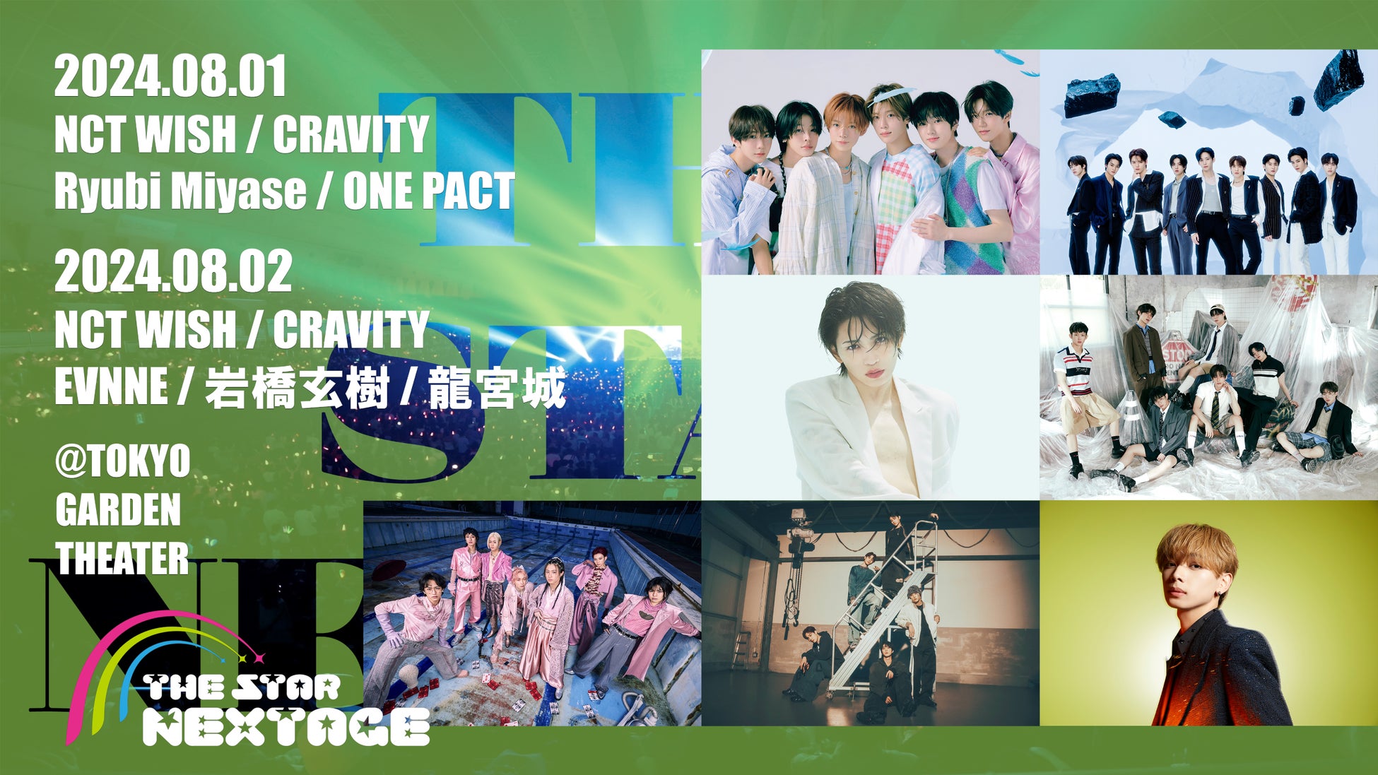 株式会社スター・コンチネント、株式会社エニー、ぴあ株式会社、HJホールディングス株式会社の合同主催にて、8月1日(木)・2日(金)の2日間に渡り東京・有明の東京ガーデンシアターで開催される今回のイベントには、韓国からはNCT WISH、CRAVITY、EVNNE、ONE PACT、そして日本からは岩橋玄樹、Ryubi Miyase、龍宮城というK-POP・J-POPシーンの次世代を担う新進気鋭のアーティストが勢ぞろいする。