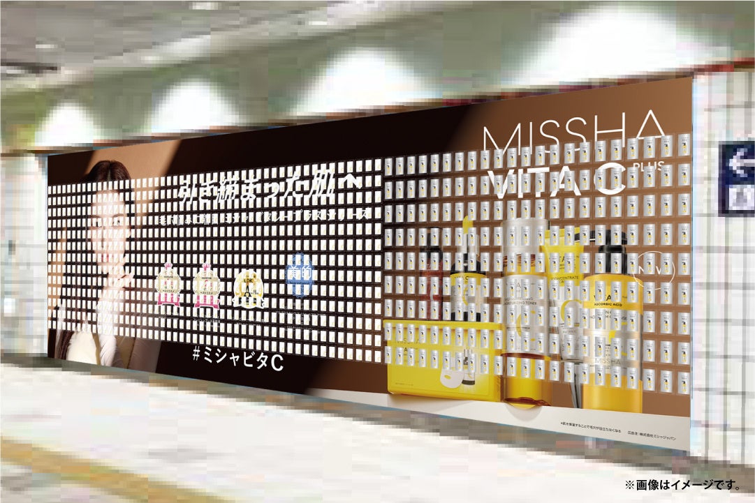 毛穴悩みに着目した人気スキンケア「ミシャ ビタシープラス シリーズ」の、「泡マスク洗顔」「化粧水」「美容液」が各2枚ずつ入ったお試しパウチのサンプリングを、ピールオフ形式で実施。サンプルをはがしていくと、『引き締まった肌へ』というシリーズコンセプトを体現する、凛とした眼差しとクールな表情が印象的なTWICE SANAの特大ビジュアルが登場します。