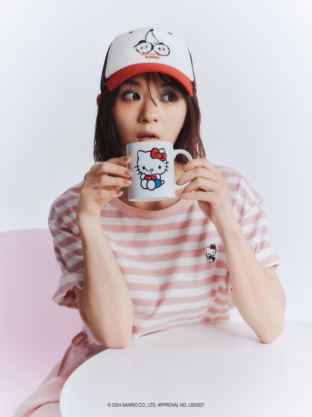 KIRSHのシンボルであるチェリーを、ハローキティがギュッと抱きしめたデザインなど、コラボレーションならではのエクスクルーシブなアイテムを販売いたします。POPUP期間中は購入者限定のノベルティも多数揃えており、10日(土)にはハローキティのグリーティングも行います!