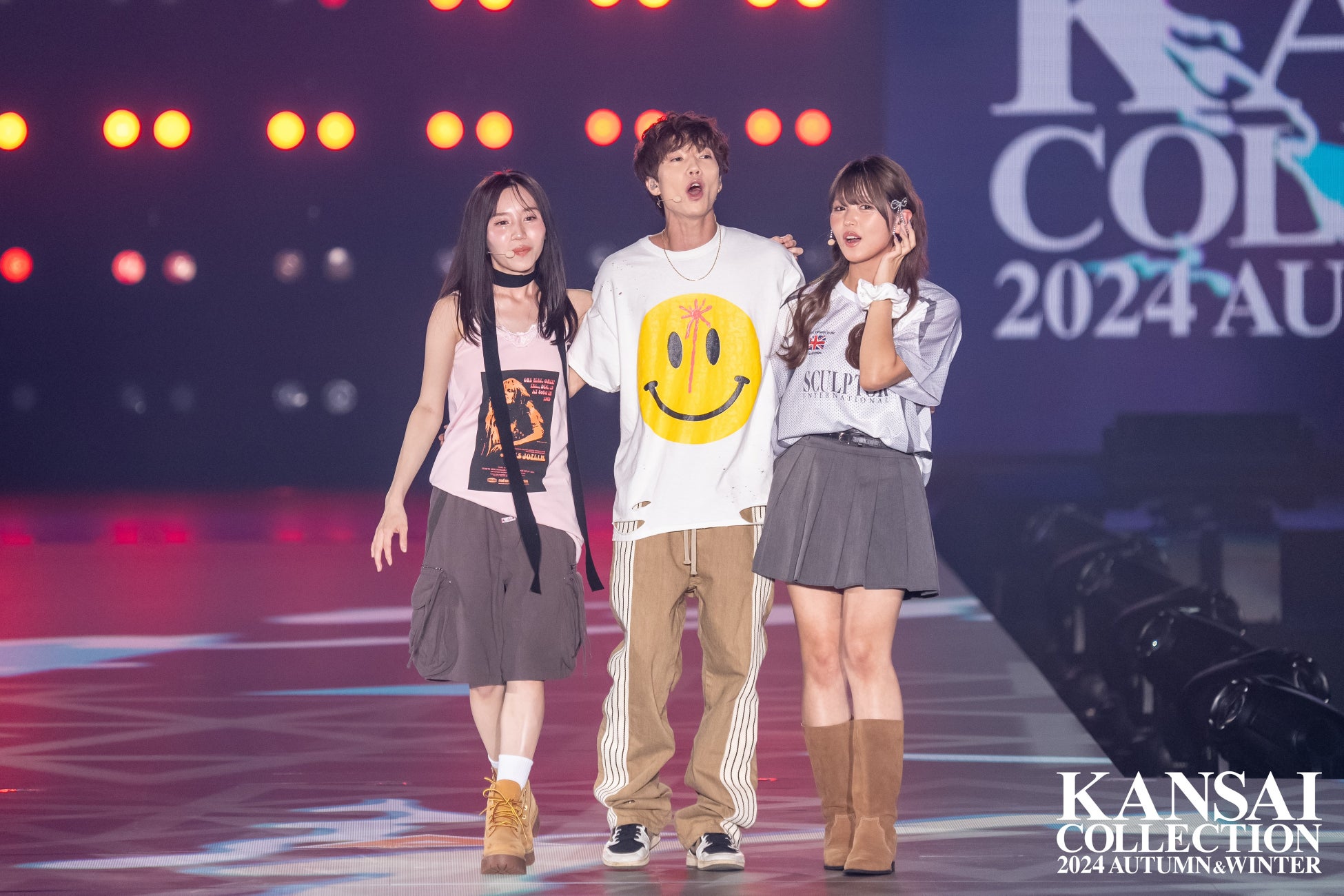 開演を待つ観客の前に、TikTokで“熊本の彼氏”として話題の熊本出身のシンガー・ソングライター杉本琢弥や、女性アイドルグループ超常フォーチューンやAVAMが登場!これから始まる関西コレクションへの期待感が高まりました。