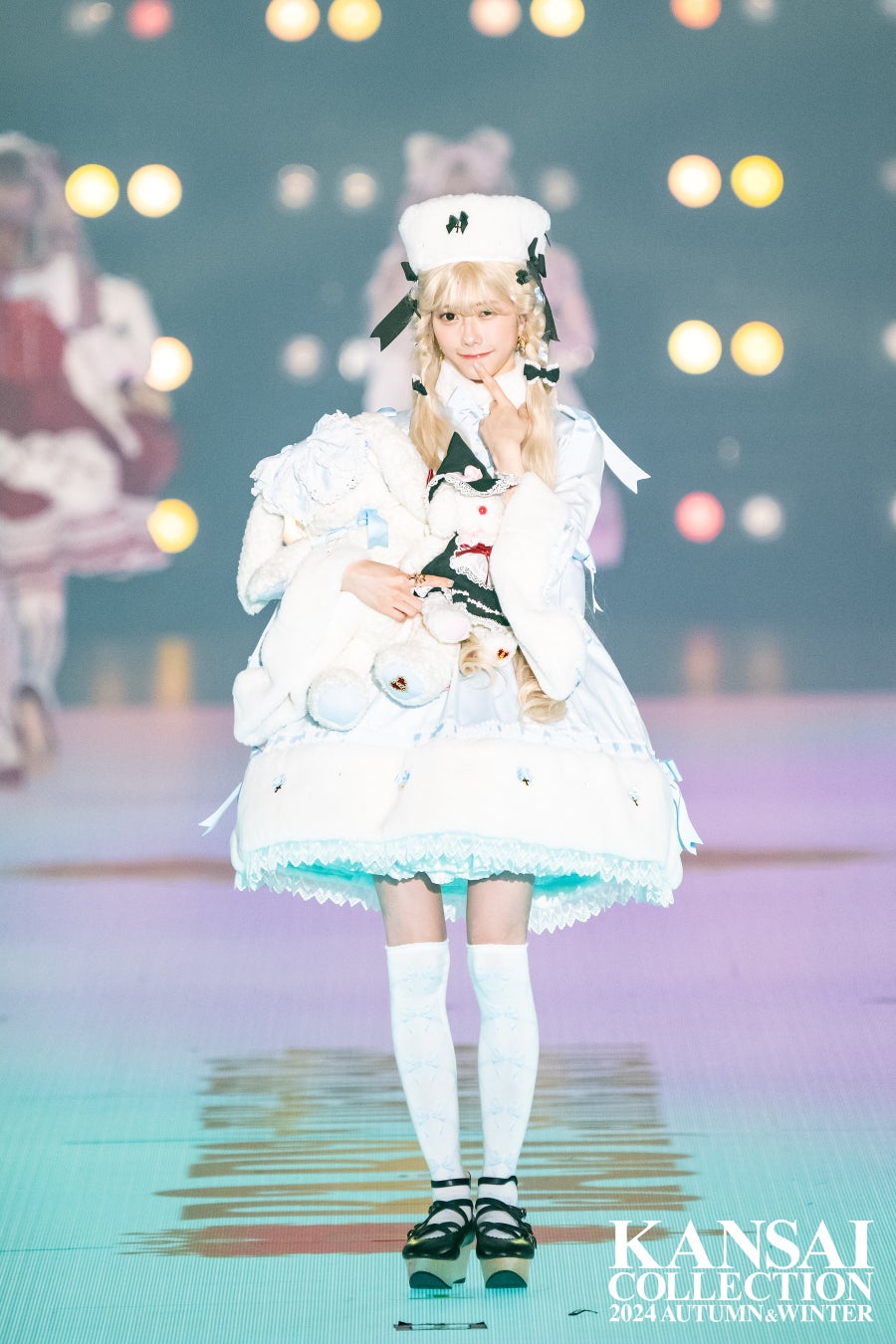 島崎遥香、千葉恵里(AKB48)、「おさみみ」の愛称でZ世代から支持を集める仲良しコンビおさき&MINAMIらがロリータファッションでランウェイに登場。