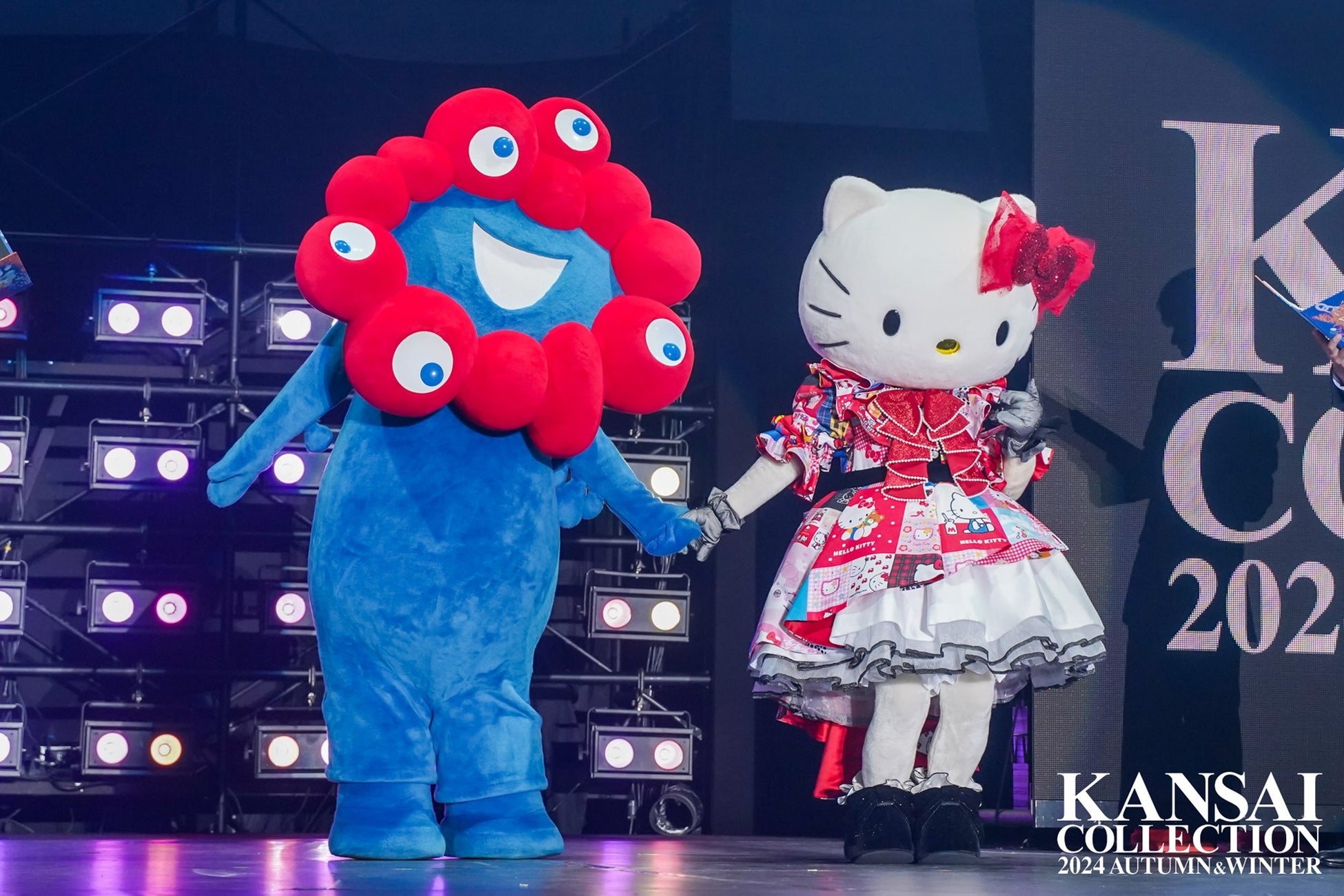 ハローキティとミャクミャクが手をつないで可愛いツーショットを披露。さらに、メインMC2名と、関西出身のLive Streaming MC大倉士門、ミャクミャクとのスペシャルトークで、大阪万博に向け盛り上げました。