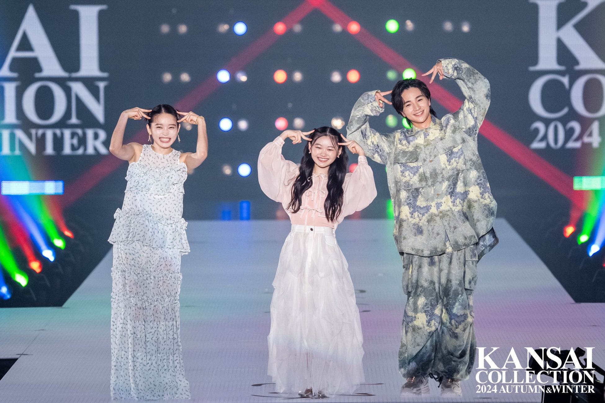 関西コレクションが全面プロデュースをする「GAKUSEI RUNWAY」。女子学生の夢を応援するため、10代に絶大な支持を得ているろこまこあこやHinataらゲストが受賞者のランウェイ登場前にステージに登場。