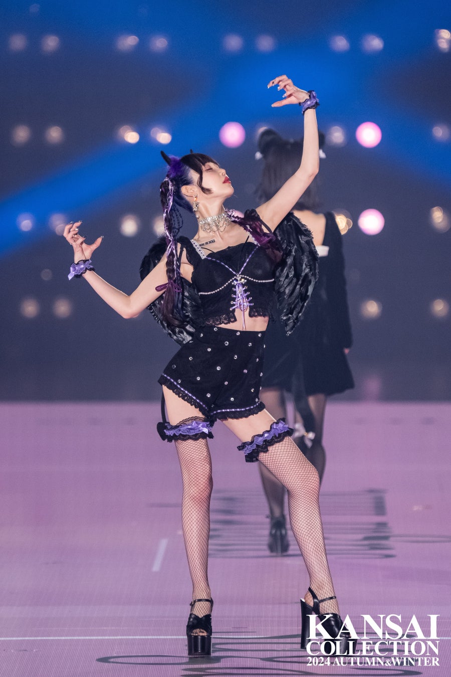 柏木由紀や藤咲凪(最終未来少女)ら人気ゲストが登場。さらに、 YENAが前回の関コレに続きモデルとしても登場し、黒のチューブトップワンピースに身を包みランウェイを歩いたり、夜のひと笑い・こうが雪だるま姿で登場するなど、見どころの多いステージでした。