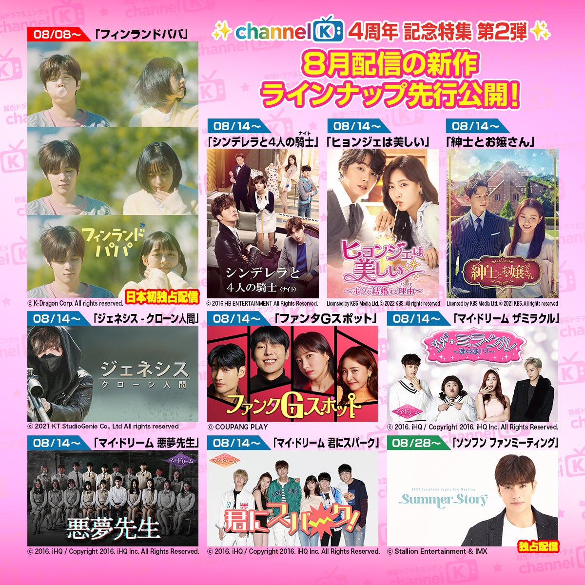 8月8日よりチャンネルKにて独占配信を開始した注目の新作も無料対象に!