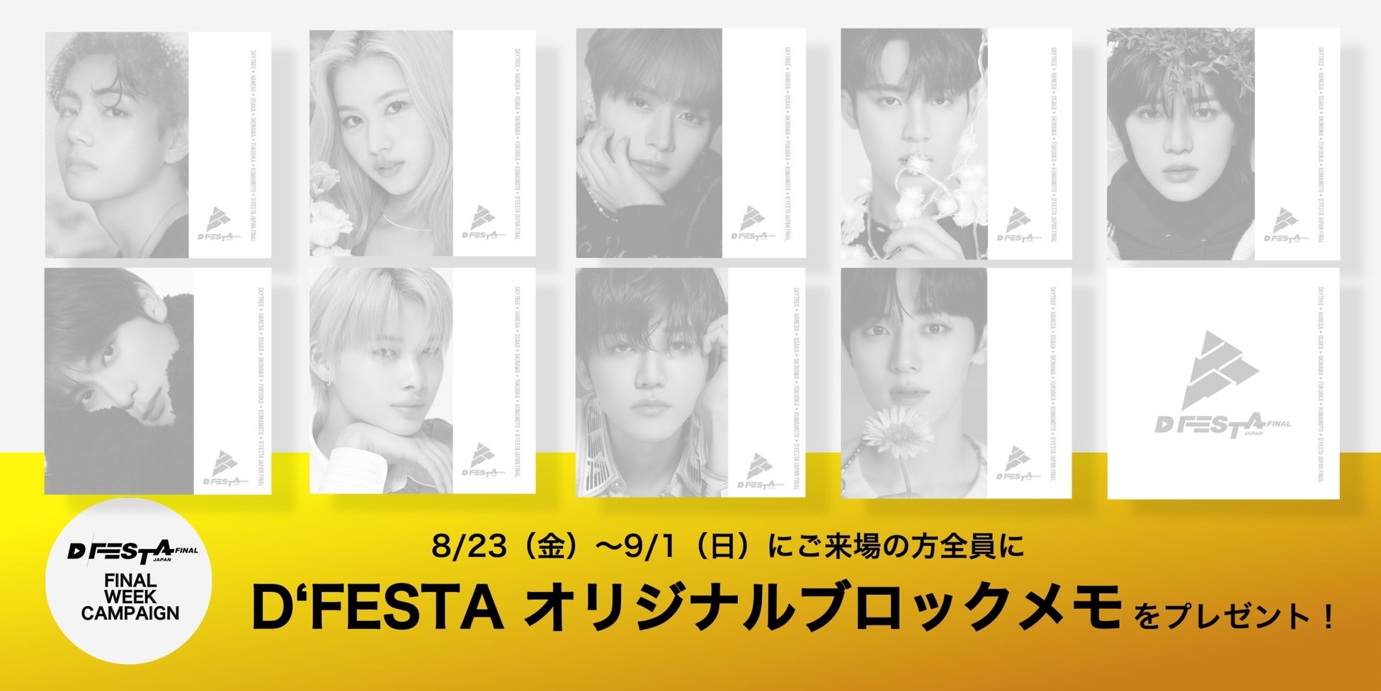 ラスト10日間となる8月23日(金)〜9月1日(日)の期間、「D’FESTAオリジナルブロックメモ(全80枚)」を来場者全員にプレゼント。