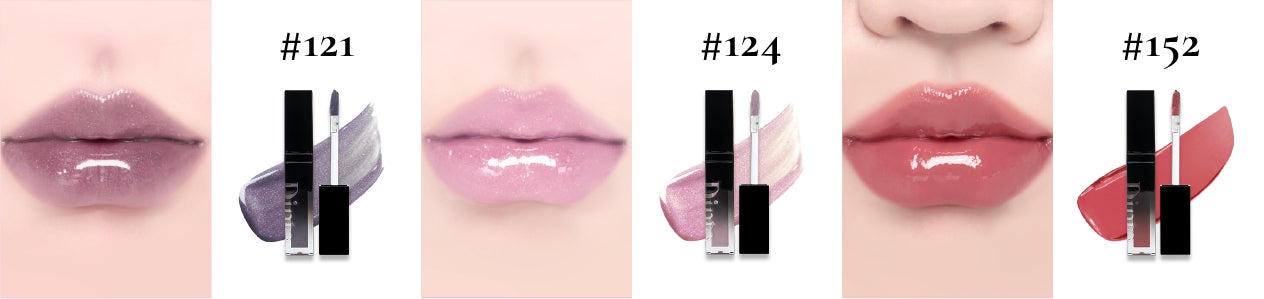 ボリュームパールキッスグロスは、#121と#124の2色で展開されます。透明感のあるツヤと色味、そしてパール感をクリアでほんのりと表現するリップグロス。プランパー成分※1を16%配合し、ふっくらとした唇を演出します。また、ブラーグロイリップティントに重ね塗りすることで、新たな楽しみ方を提案できる商品です。