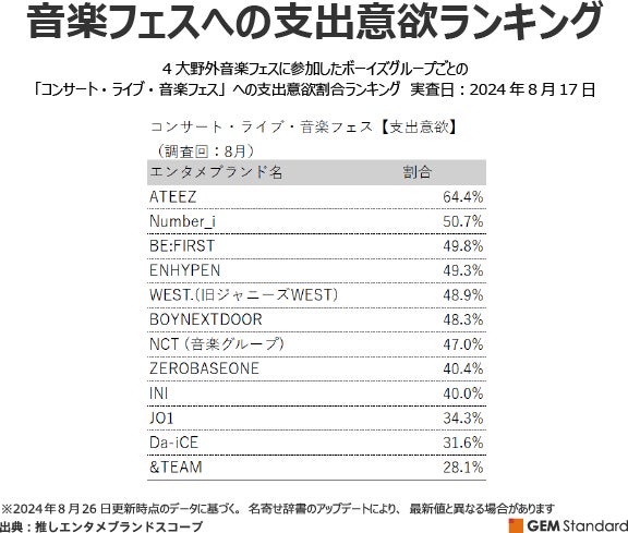 ファンによる音楽フェスへの支出意欲が最も高かったのは『ATEEZ』