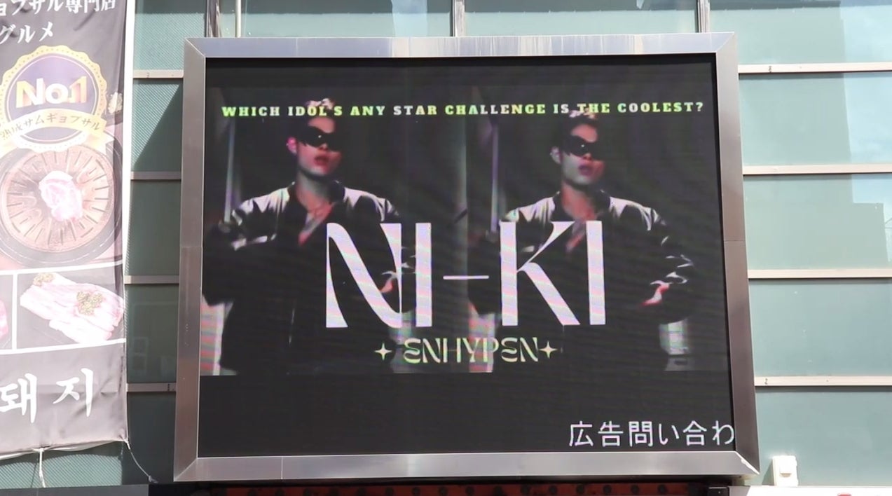 2024年8月12日(月)~8月18日(日)での期間で開催した「[K-STAR BOARD投票] 最高の「スター・チャレンジ」のアイドルは?の投票において1位に選ばれたENHYPENのNI-KIさんの応援広告が、新大久保のK-PLAZA 1号館の屋外ビジョンで上映されております。