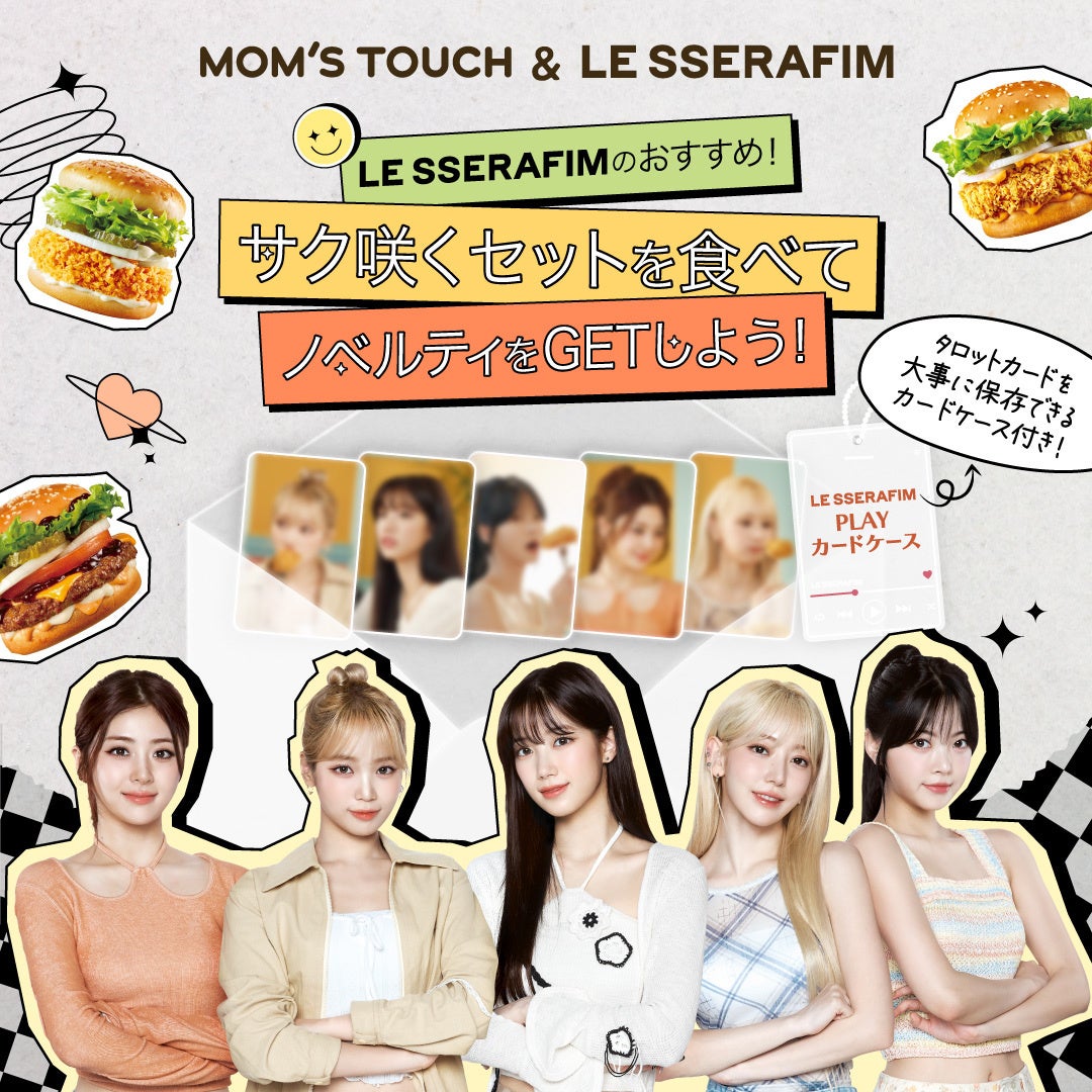 韓国No.1※チキン&バーガーブランド「マムズタッチ」は、ブランドローンチ20周年を記念し、2024年8月22日(木)に世界で活躍するガールズグループ「LE SSERAFIM」をブランドアンバサダーに起用しました。今回、ブランドアンバサダー就任を記念し、2024年9月9日(月)~10月8日(火)の期間限定で、毎日200名様に数量限定でノベルティ付き「LE SSERAFIMのおすすめ!サク咲くセット」を販売します。