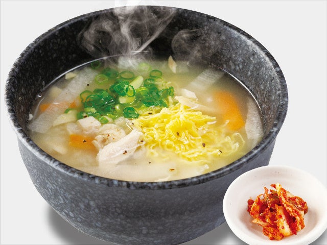 鶏肉と香味野菜をじっくりと煮込んだ優しい味わいの参鶏湯(サムゲタン)です。骨なしのほぐし身で提供いたします。