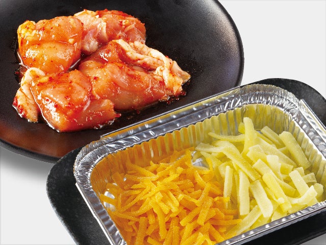 チーズタッカルビを焼肉スタイルで再現しました。チェダーチーズとナチュラルチーズをホイルで溶かし、焼き上げた旨辛味の鶏もも肉に絡めてお召し上りください。