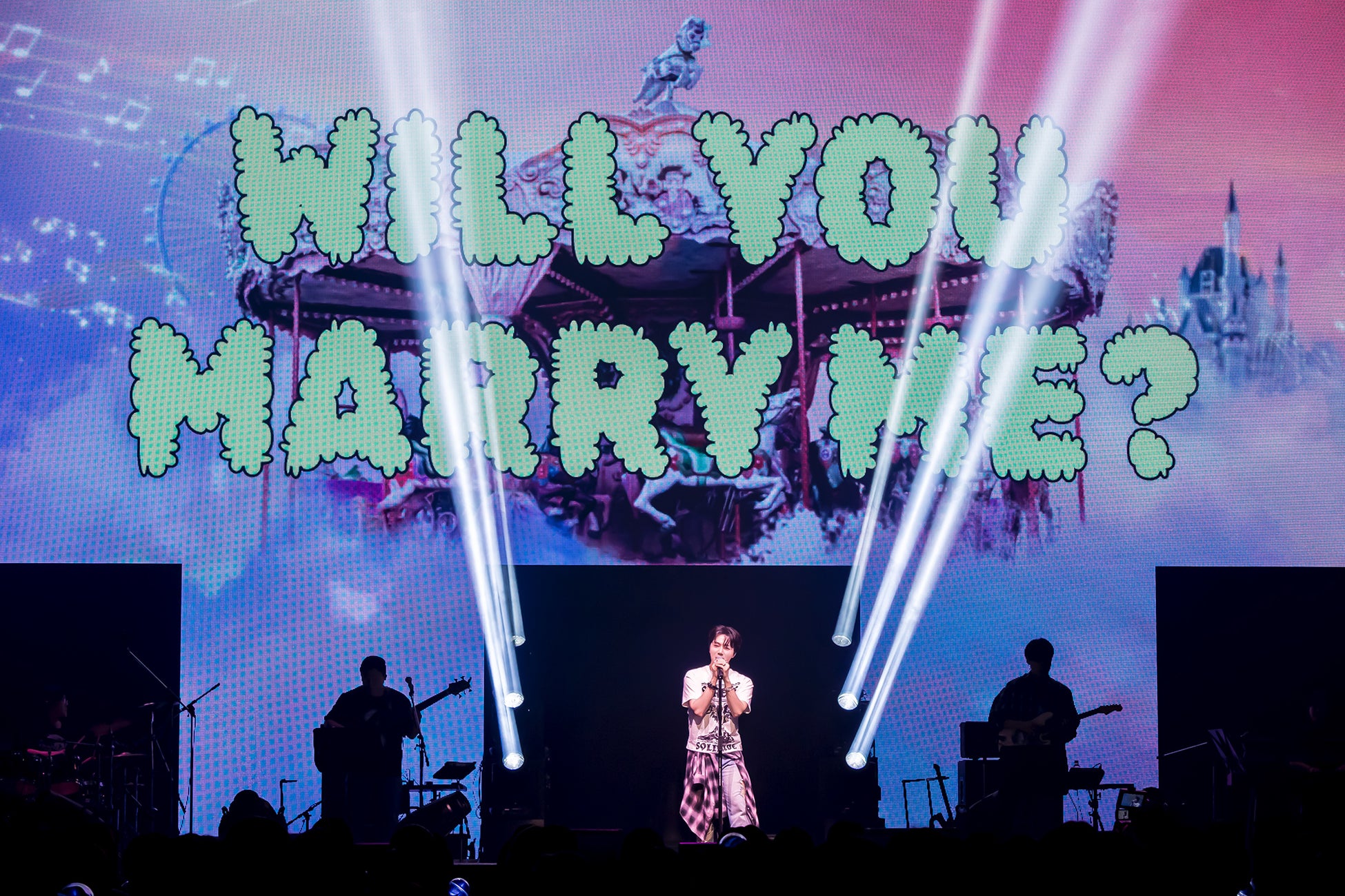 「僕に近づいて欲しい」というコンセプトのアルバムからの新曲5曲は端正にリズミカルに、愛らしく、そして激しく。カバーも5曲という編成で、特にエド・シーラン「Thinking Out Loud」(2部)では英語の曲を完璧に歌い上げ、圧巻だった。